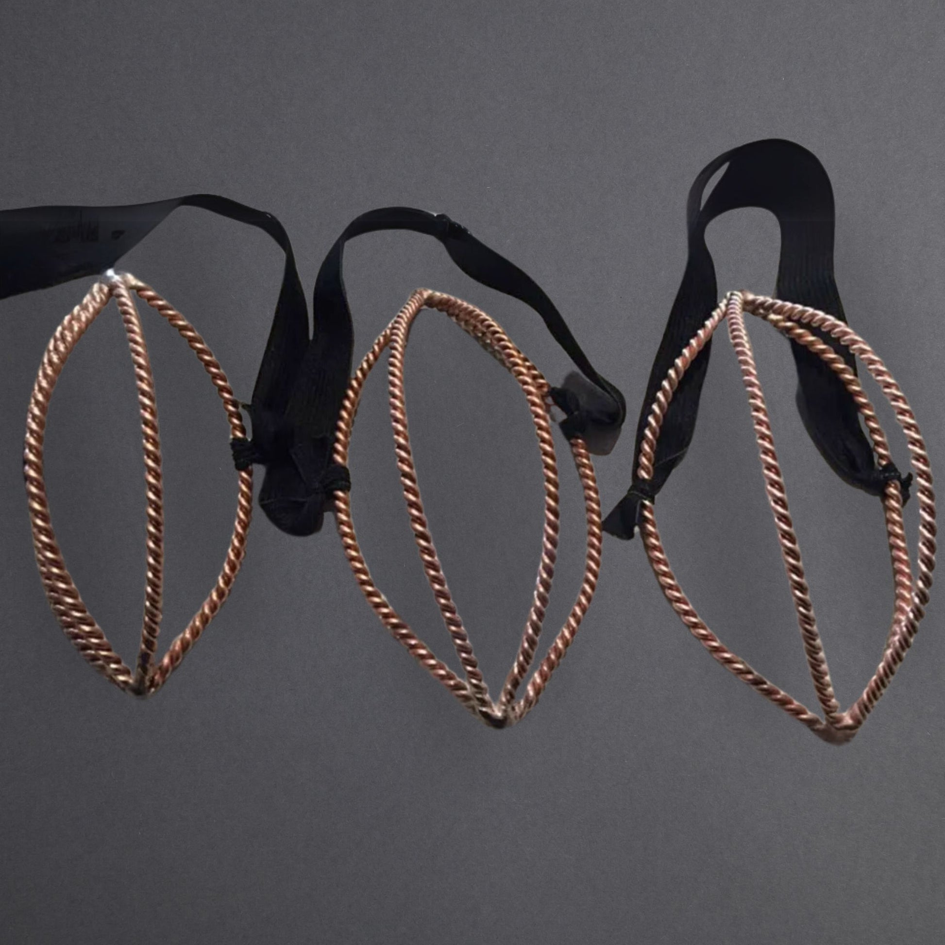 The inspiration for the Nose Mask came through Slim’s friend and co-researcher, Lonnie Anderson. This tool incorporates the same principles of quantum physics and sacred geometry that lie behind all of the Tensor Tools. Worn on the face, the Nose Mask is used to alleviate sinus problems, asthma, allergies, hay fever, or any type of respiratory ailment. Head cold symptoms often disappear soon after this device is strapped on. In areas where pollution levels are high and on days when chem-trails are being sprayed, the Nose Mask offers both protection and relief from the effects of chemicals in the air.